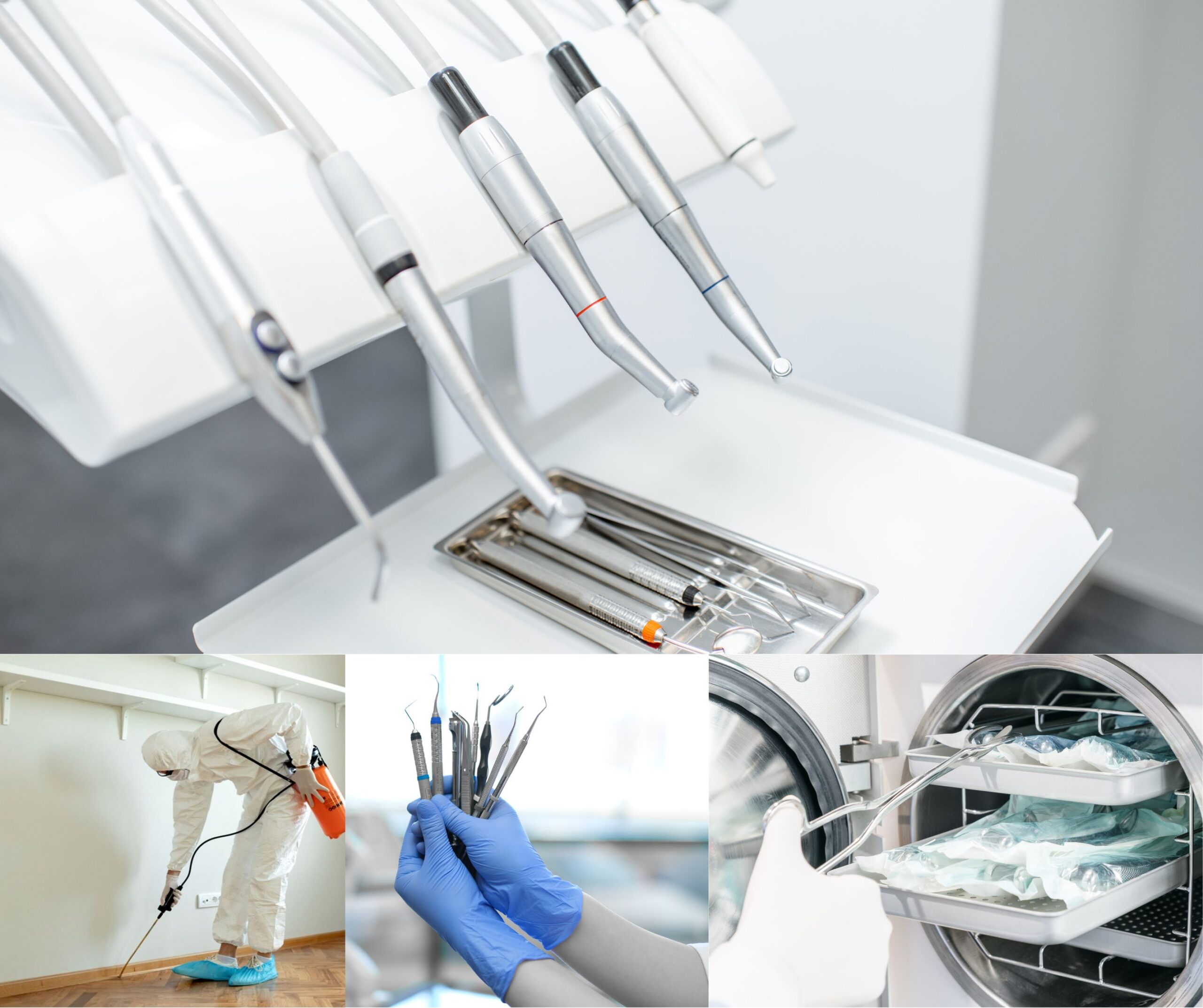 قبل كل مريض، يتم تنظيف وتعقيم غرفة الفحص بالكامل، بما في ذلك كرسي الأسنان، ضوء الأسنان، مقابض الأدراج، وأسـطح العمل، مع استخدام أغطية واقية يتم استبدالها بعد كل استخدام.